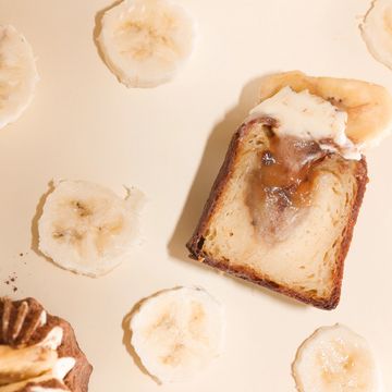 A twist on a classic, filled with smooth banana caramel, finished with a light touch of cream and cocoa for a perfectly balanced sweetness.