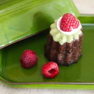 Matcha ganache. Raspberry meringue. Fresh raspberry. Finished with a delicate glaze made with premium matcha powder.
